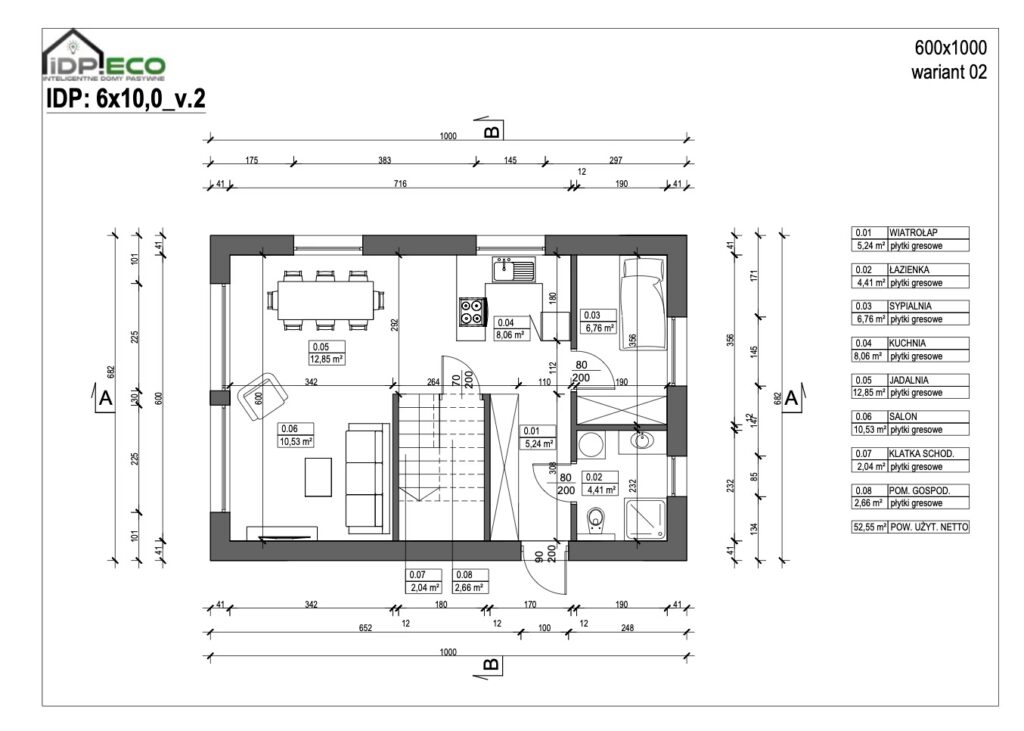 - Wymiary zewnętrze budynku: 6,82m x 12,5m