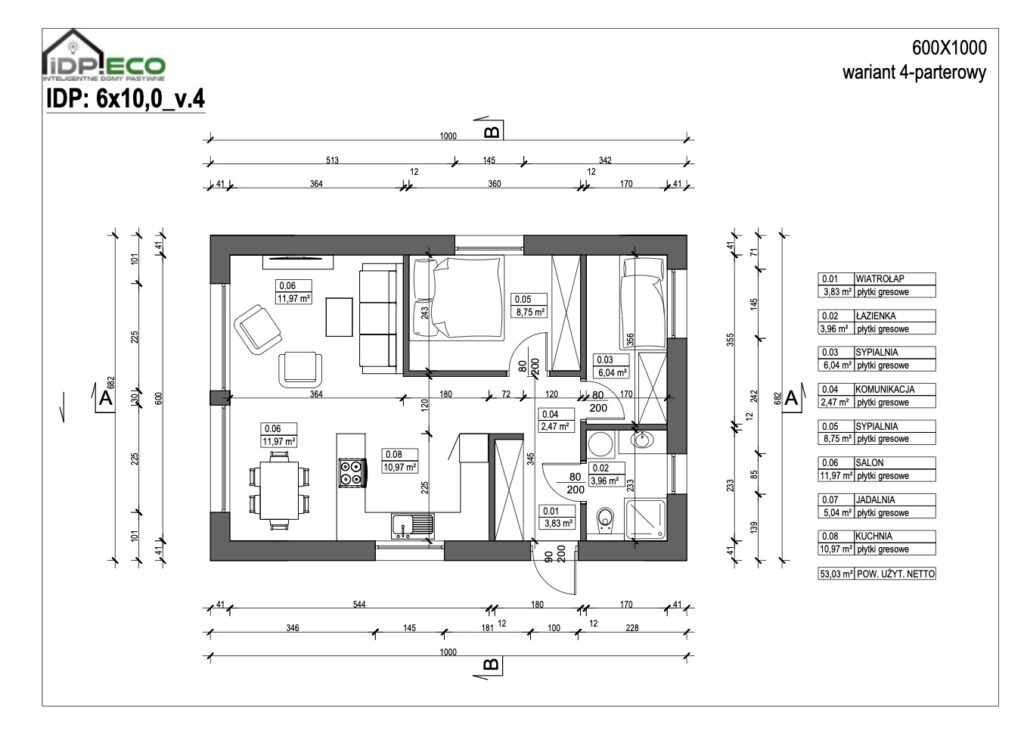Dom IDP 110 m² to idealne rozwiązanie dla rodzin 2+1, 2+2 i 2+3 jako dom całoroczny. Duża powierzchnia i liczba pokoi zapewni komfort dla całej rodziny a dodatkowe pomieszczenie gospodarcze pomieści wszystkie potrzebne rzeczy wokół domu. Dzięki zdrowemu mikroklimatowi i przestronnym, dobrze oświetlonym wnętrzom, dom staje się miejscem przyjaznym i relaksującym.